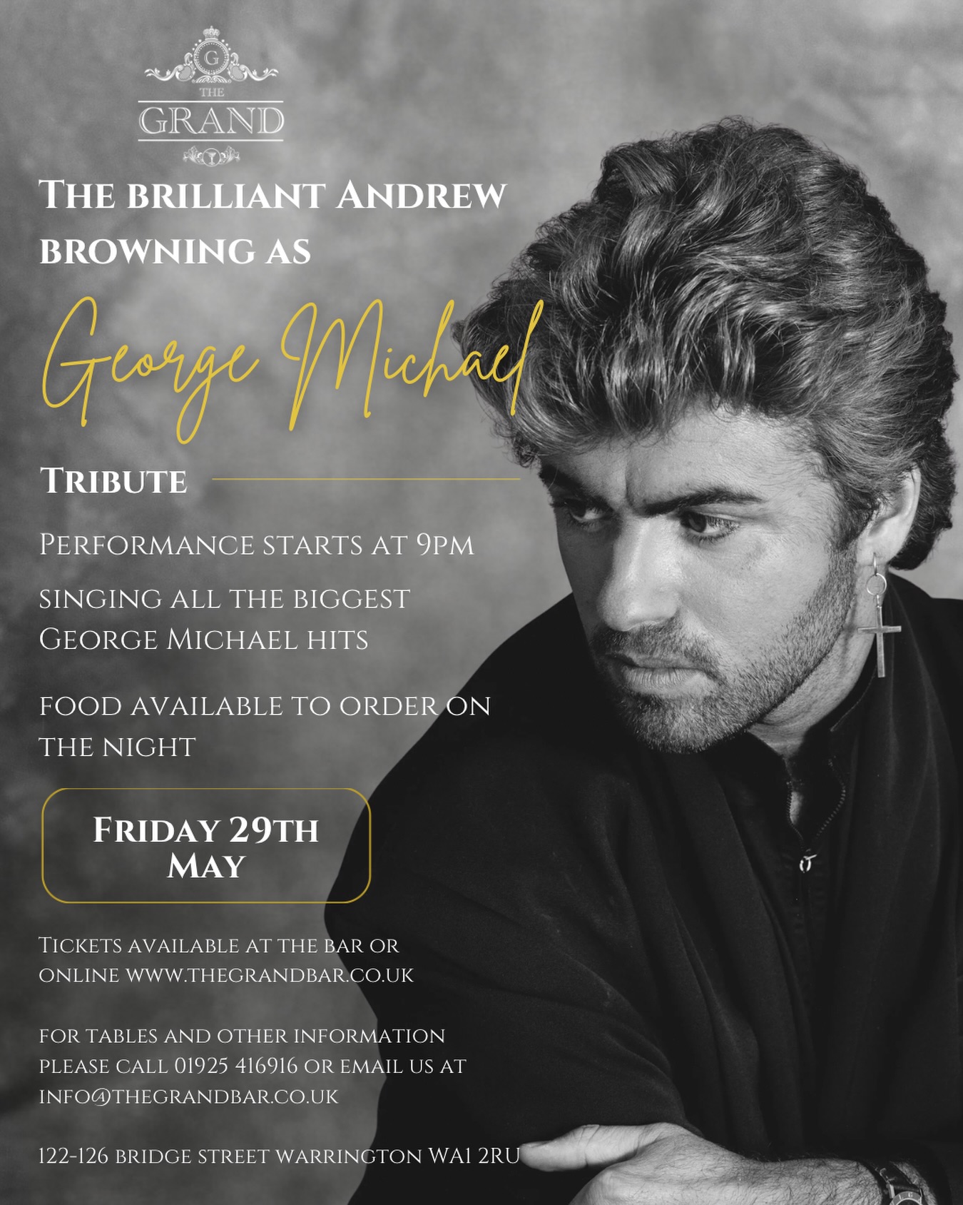 Join The Grand Bar on Friday 29 May for the brilliant Andrew Browning as George Michael.