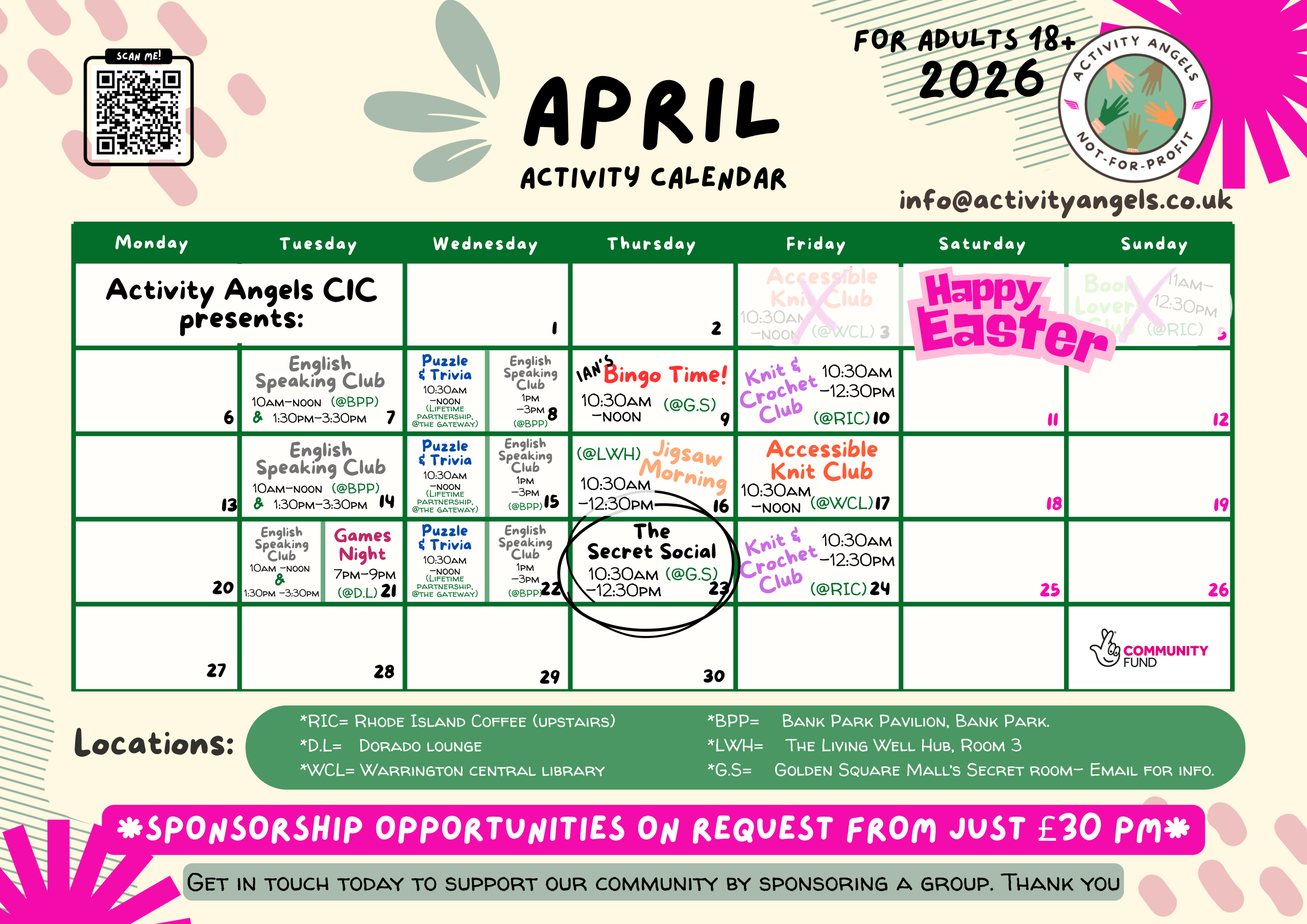April Activity Angels Timetable