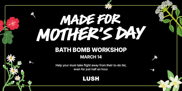 Create a handmade bath bomb and explore the world of fresh, ethical cosmetics at the Lush Mother’s Day Bath Bomb Workshop.